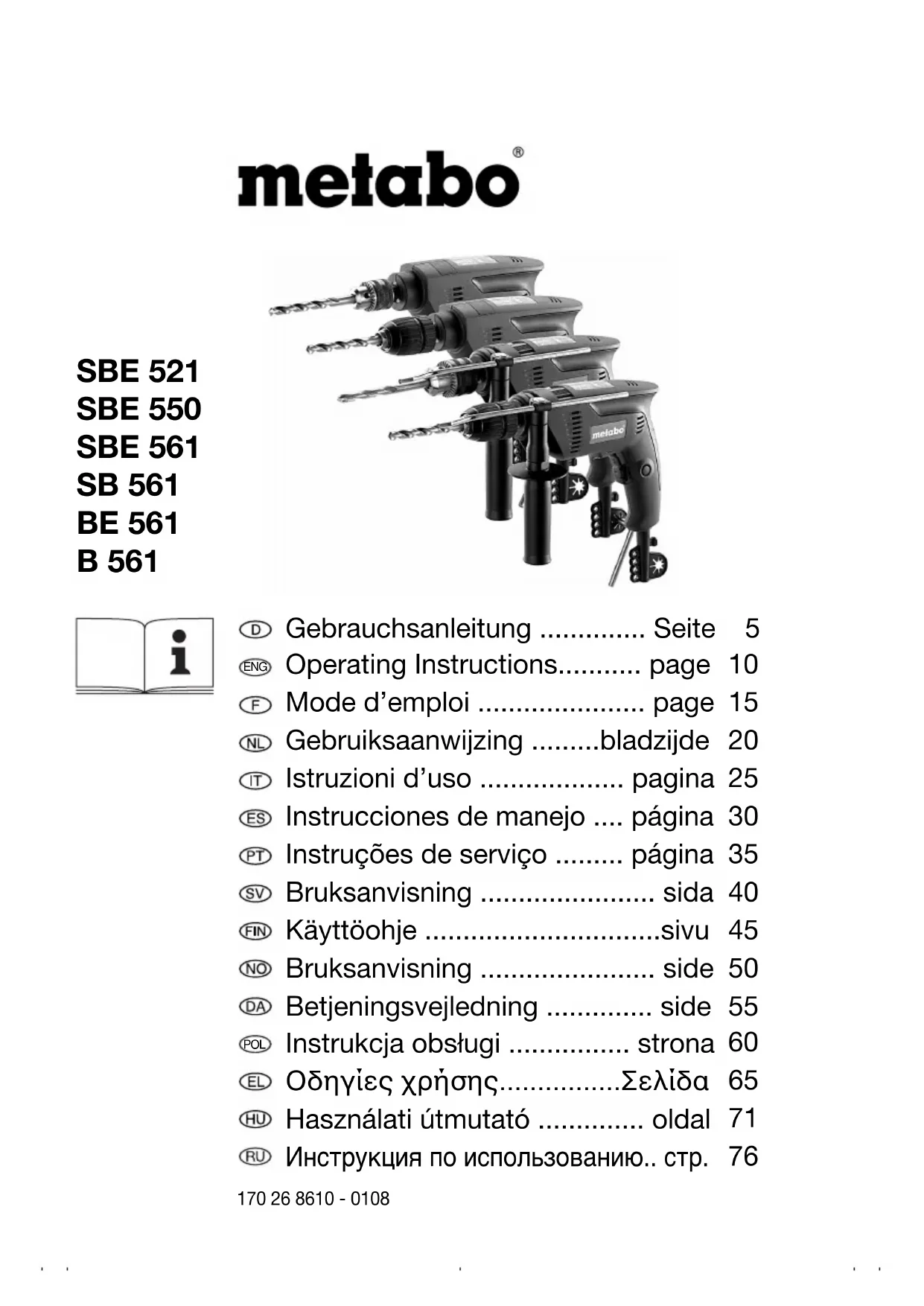 Retrouvez gratuitement la notice de l'appareil SBE 550 METABO au format PDF.