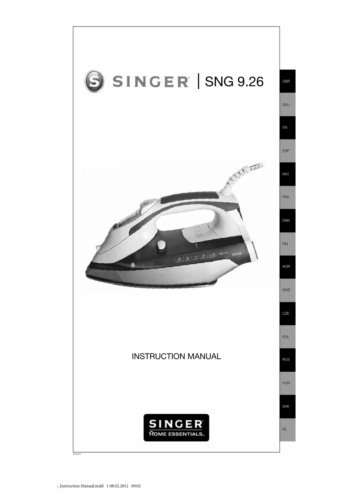SNG 9.26 - Fer à repasser SINGER - Notice d'utilisation et mode d'emploi gratuit