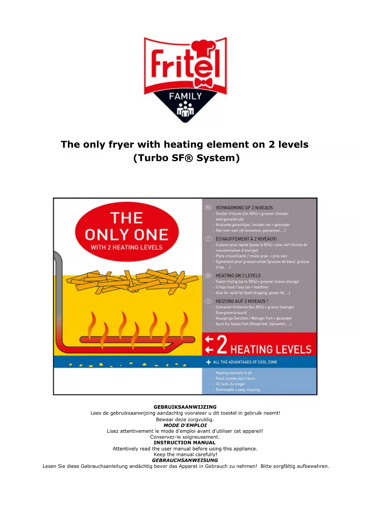 conditions de garantie échoient.FRITEL Turbo SF® fryer: The only one with heating element on 2 levels
