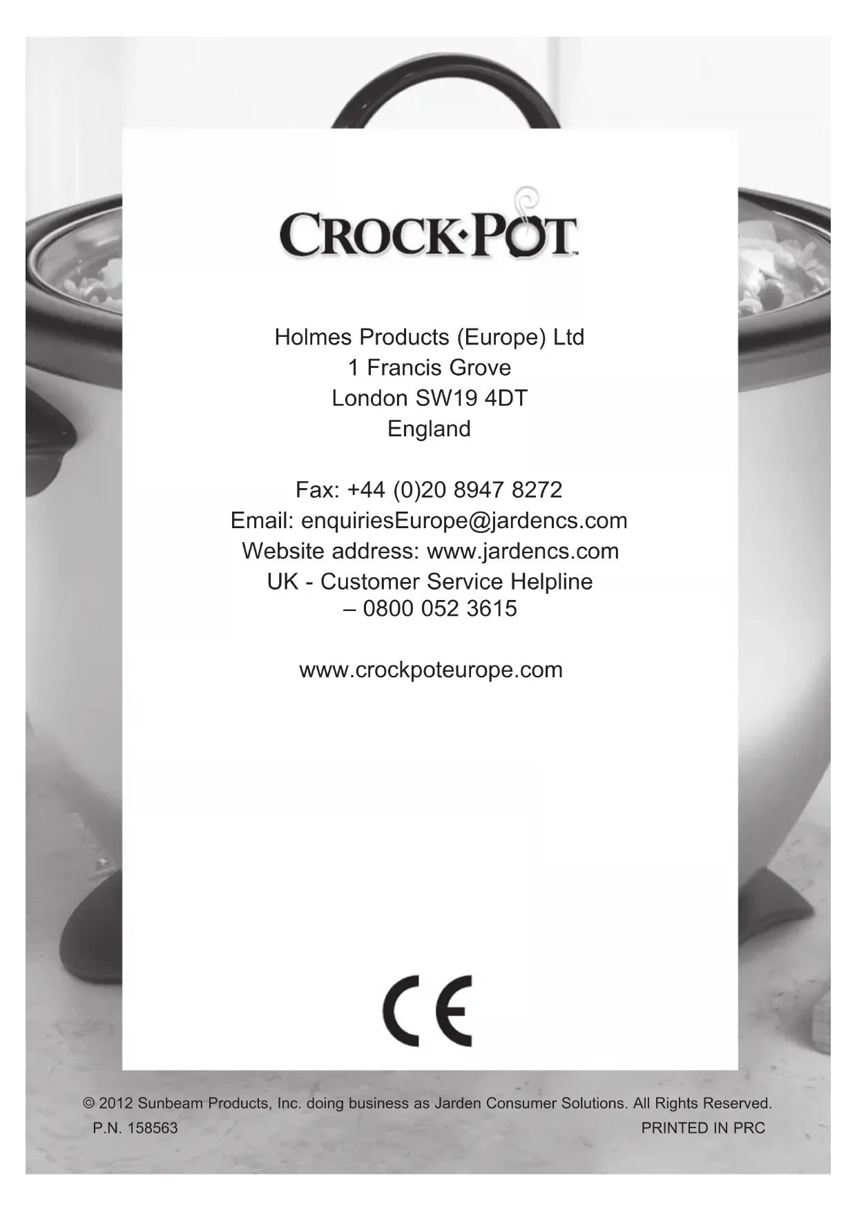 Retrouvez gratuitement la notice de l'appareil CKCPRC6038 CROCK-POT au format PDF.