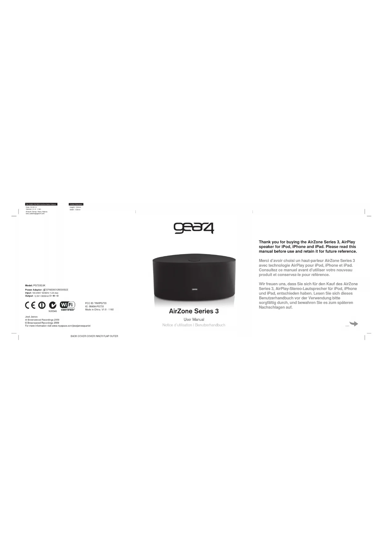 AirZone Series 3 - Récepteur de musique GEAR4 - Notice d'utilisation et mode d'emploi gratuit