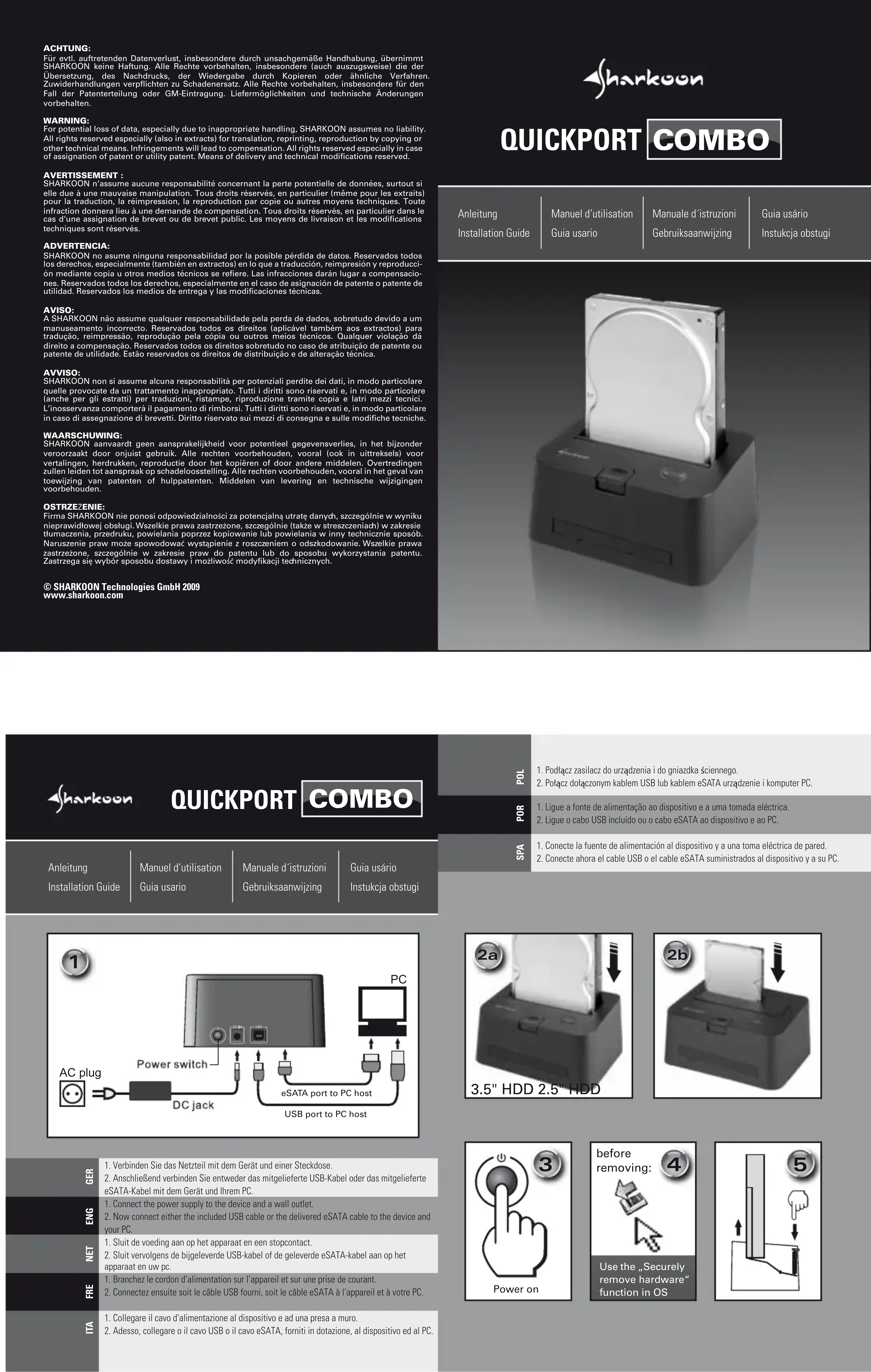 Retrouvez gratuitement la notice de l'appareil QuickPort Combo eSATA Sharkoon au format PDF.