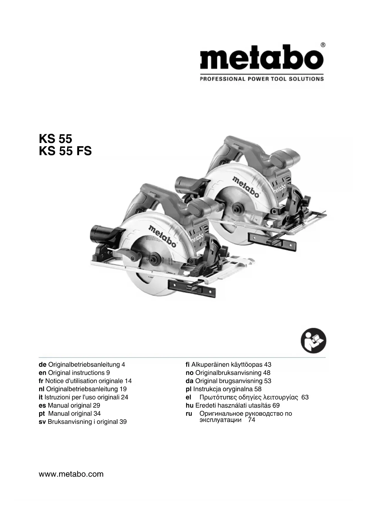 Retrouvez gratuitement la notice de l'appareil KS 55 FS METABO au format PDF.