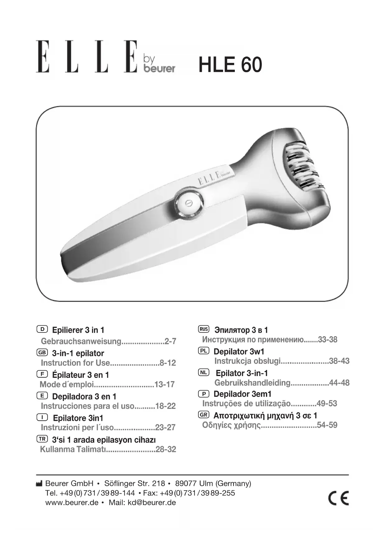 Elle byHLE 60 - Epilateur BEURER - Notice d'utilisation et mode d'emploi gratuit
