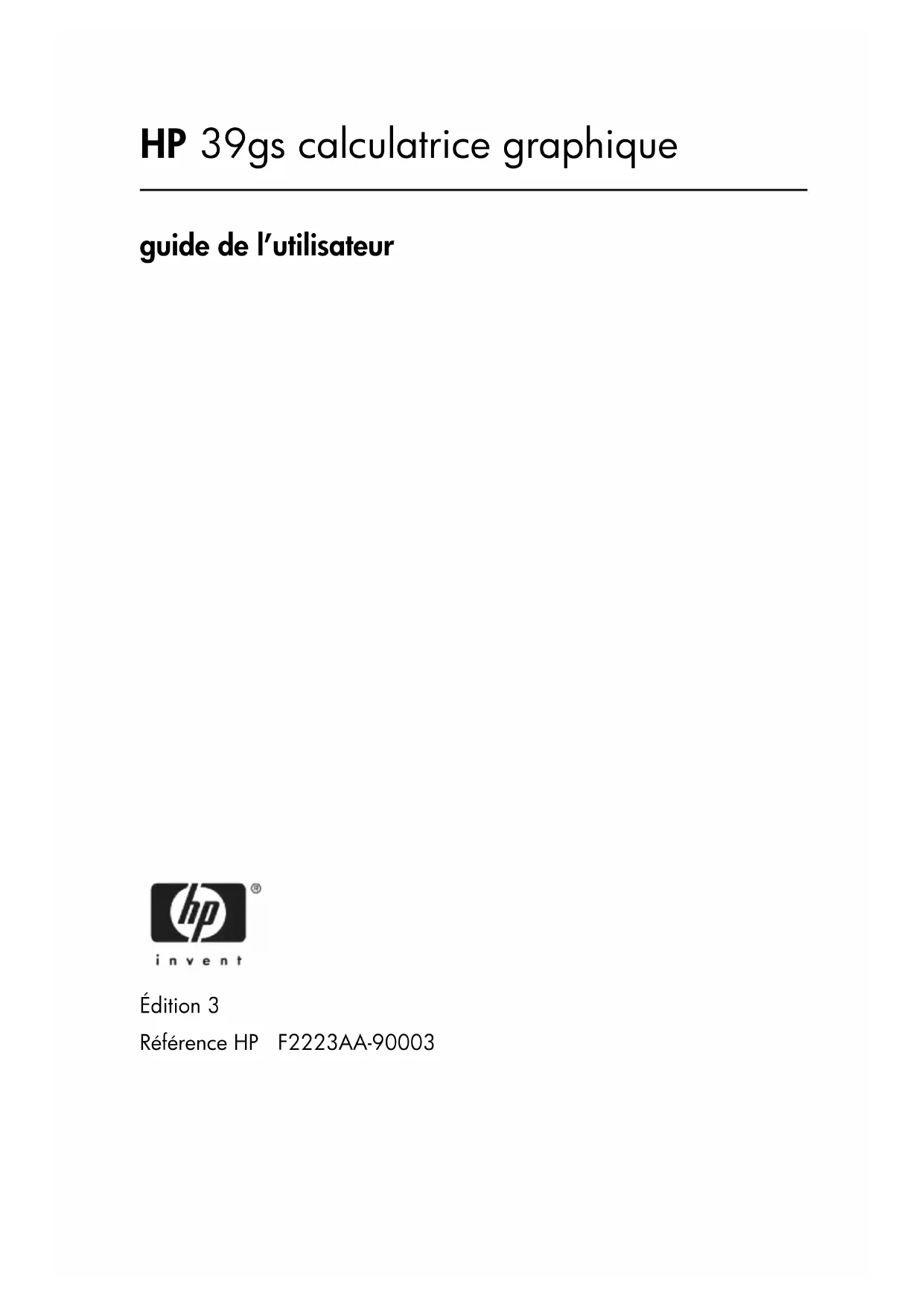 39gs - Calculatrice HP - Notice d'utilisation et mode d'emploi gratuit