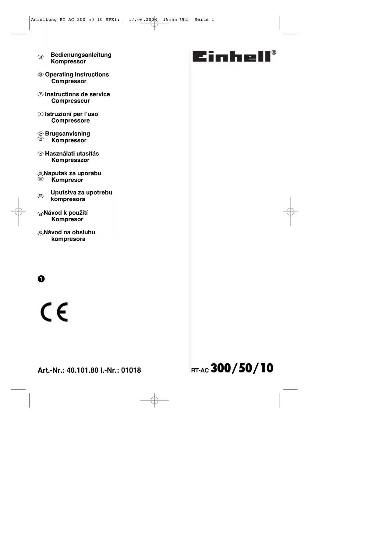 RTAC 3005010 - Compresseur EINHELL - Notice d'utilisation et mode d'emploi gratuit