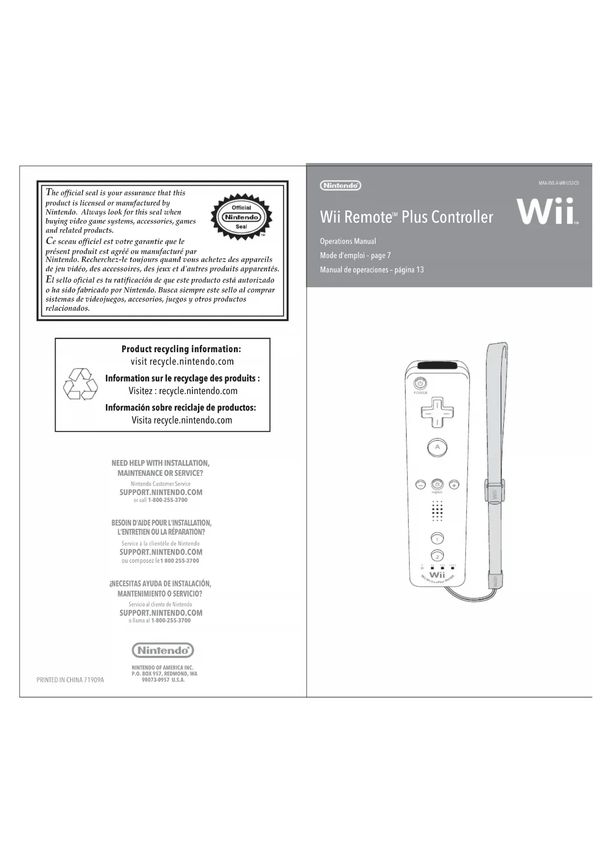 Retrouvez gratuitement la notice de l'appareil Remote Plus WiiWii U NINTENDO au format PDF.