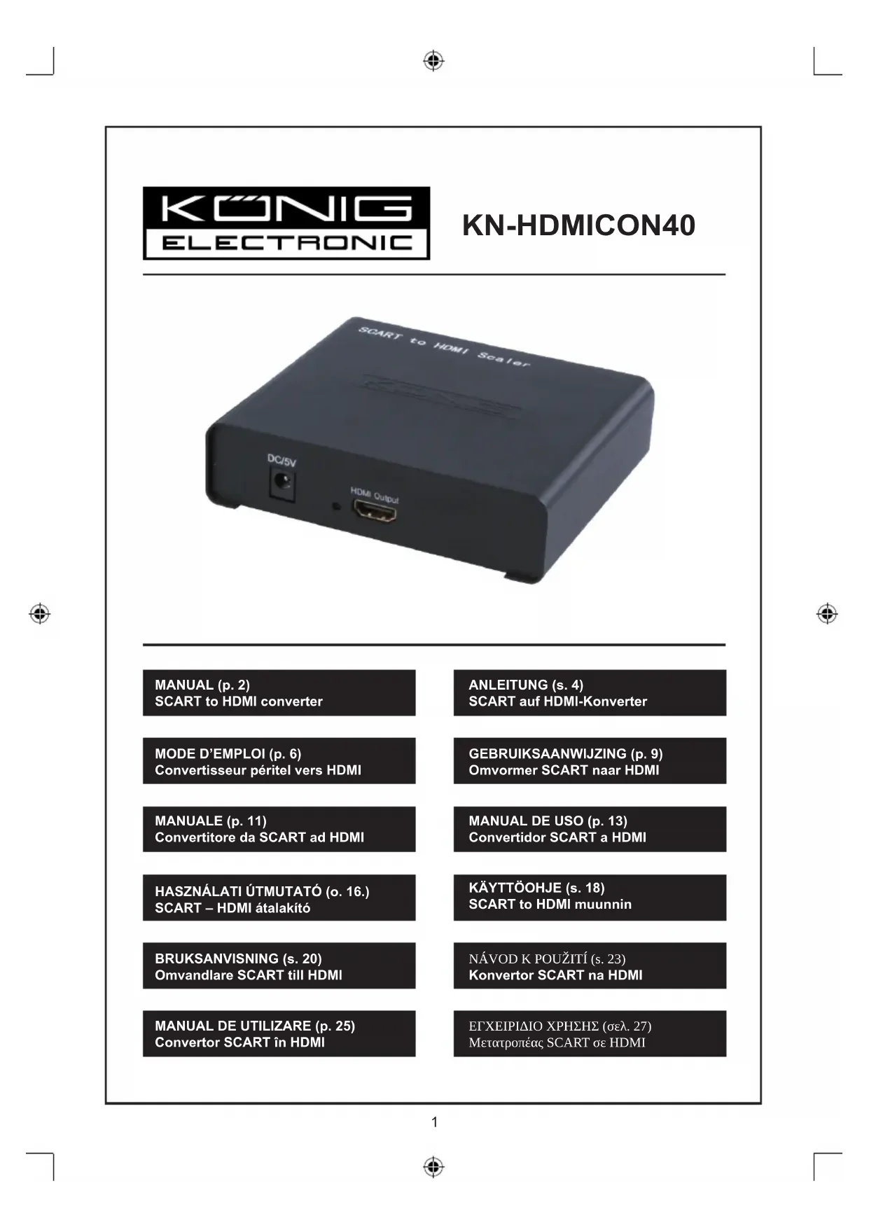 KNHDMICON40 - Convertisseur audio/vidéo KONIG - Notice d'utilisation et mode d'emploi gratuit
