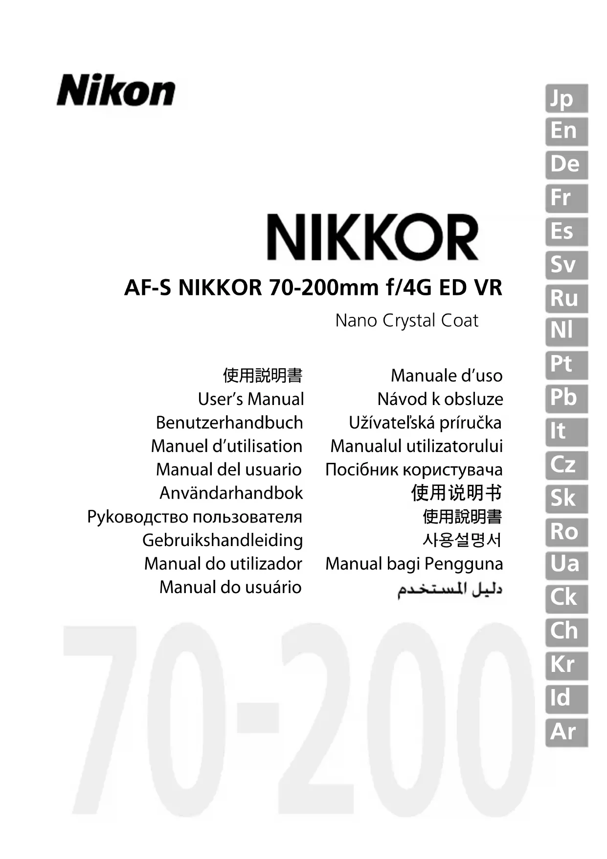 AFS 70200mm 1:4G ED VR - Objectif NIKON - Notice d'utilisation et mode d'emploi gratuit