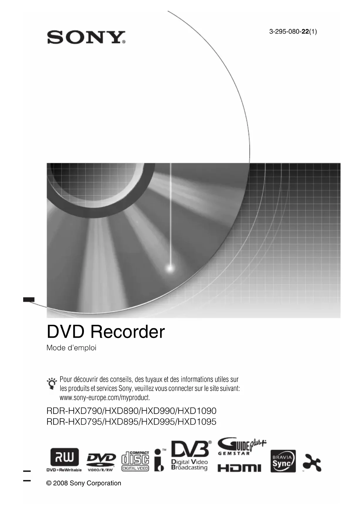 RDRHXD895 - Enregistreur DVD SONY - Notice d'utilisation et mode d'emploi gratuit