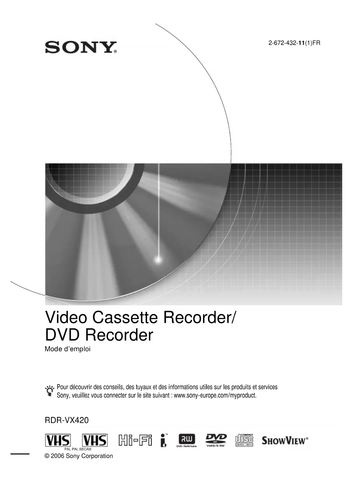 Téléchargez la notice de votre Enregistreur DVD au format PDF gratuitement ! Retrouvez votre notice RDRVX420 - SONY et reprennez votre appareil électronique en main. Sur cette page sont publiés tous les documents nécessaires à l'utilisation de votre appareil RDRVX420 de la marque SONY.