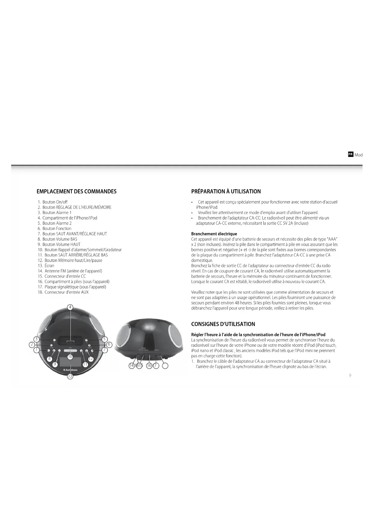 - Cet appareil est conçu spécialement pour fonctionner avec votre station d’accueil iPhone/iPod.