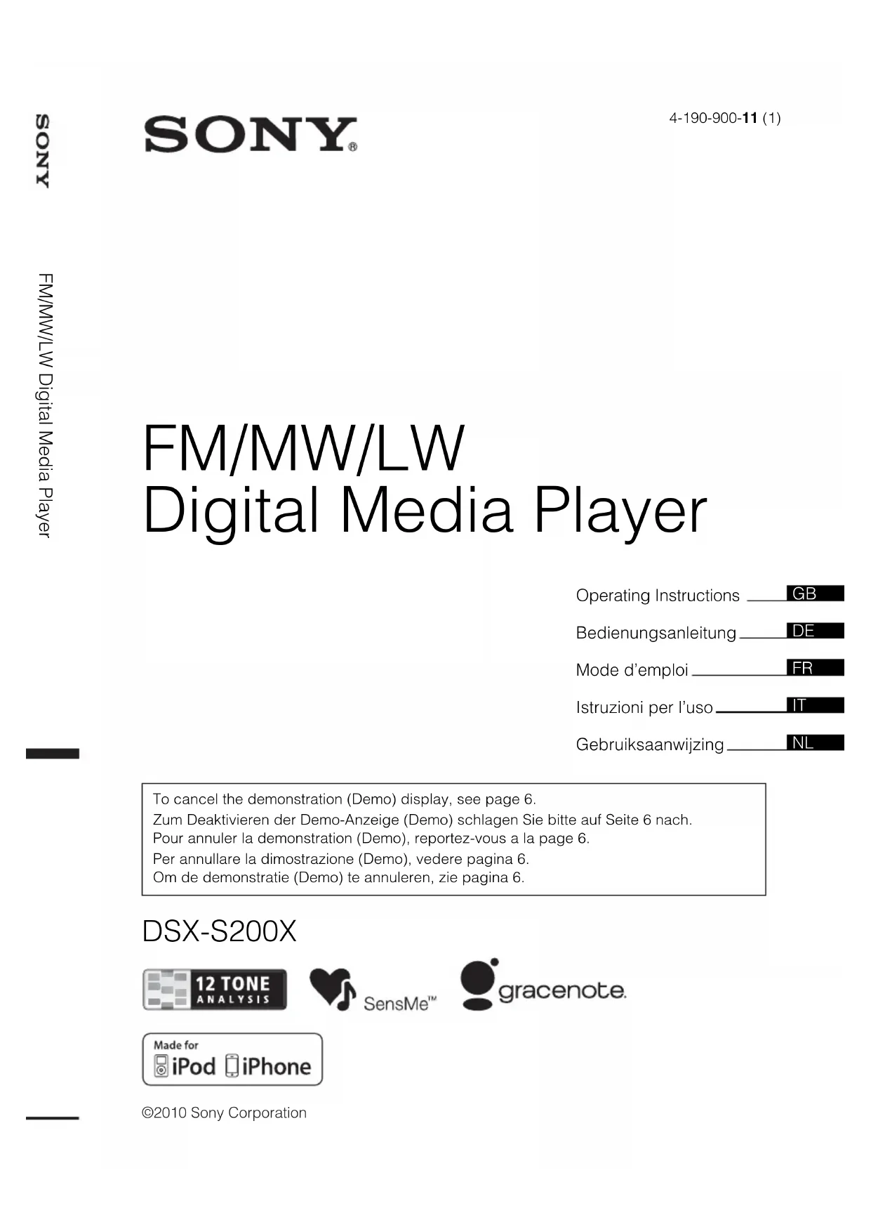 Téléchargez la notice de votre Autoradio au format PDF gratuitement ! Retrouvez votre notice DSXS200X - SONY et reprennez votre appareil électronique en main. Sur cette page sont publiés tous les documents nécessaires à l'utilisation de votre appareil DSXS200X de la marque SONY.