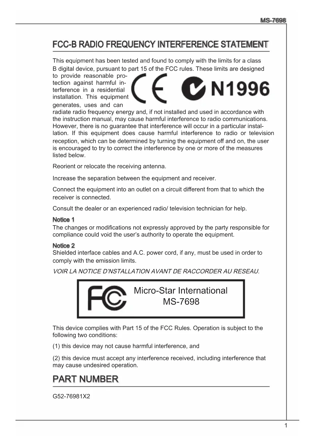 E350IAE45 - Carte mère MSI - Notice d'utilisation et mode d'emploi gratuit