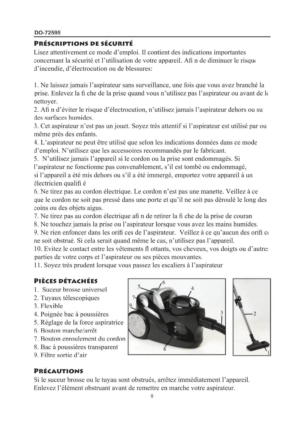 DO7259S - Aspirateur DOMO - Notice d'utilisation et mode d'emploi gratuit