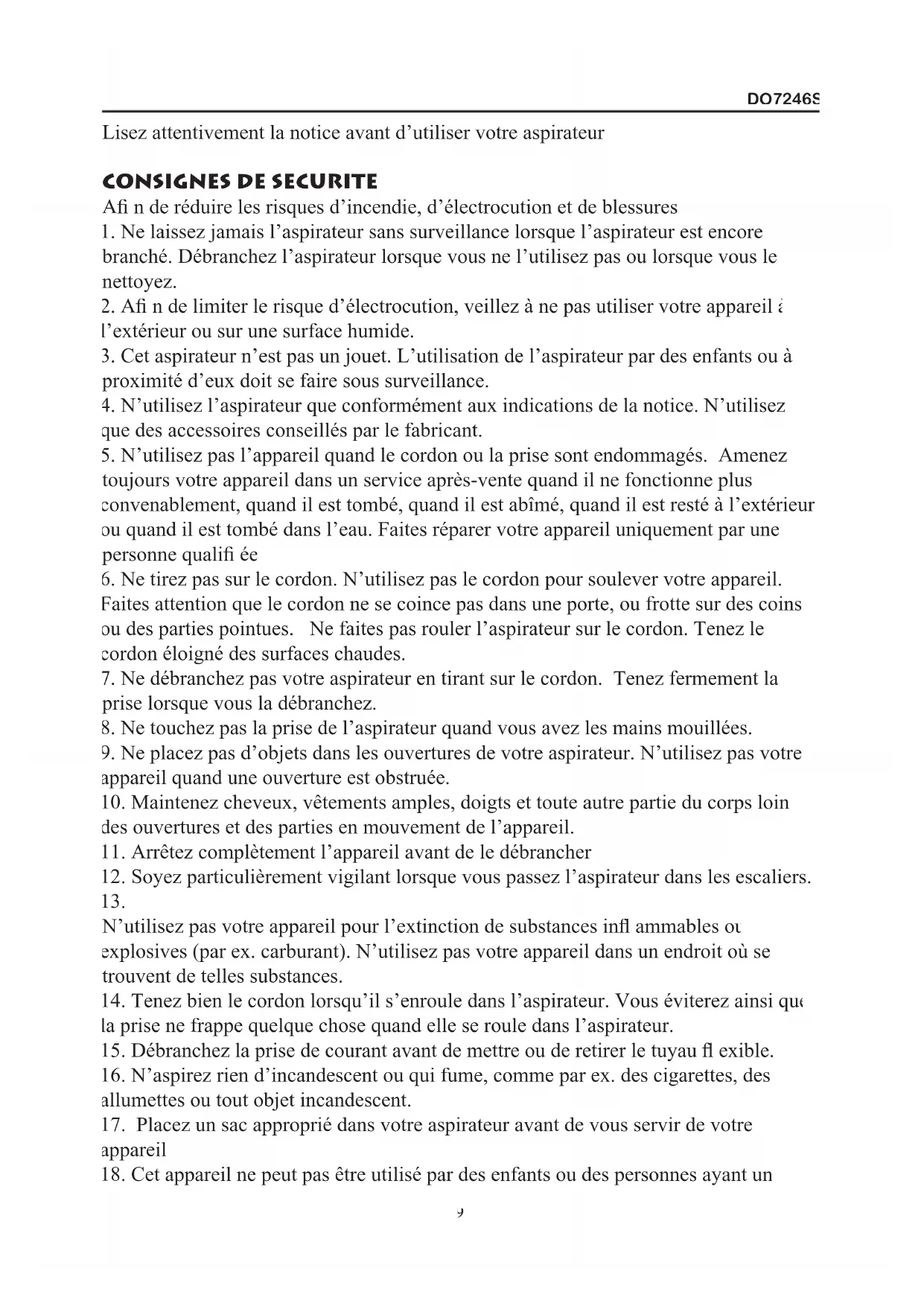8DO7246S Lisez attentivement la notice avant d’utiliser votre aspirateur