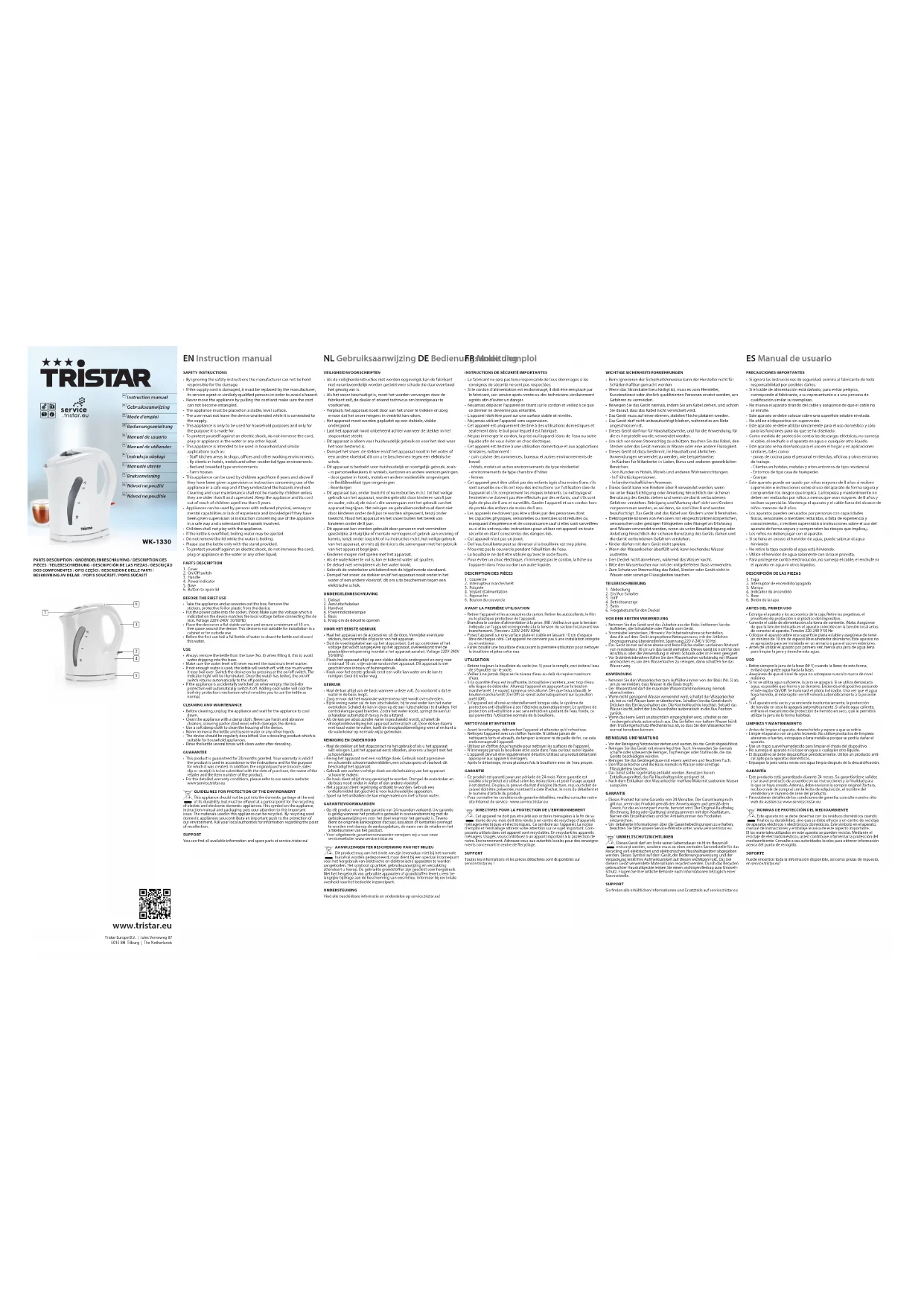 WK1330 - Bouilloire TRISTAR - Notice d'utilisation et mode d'emploi gratuit