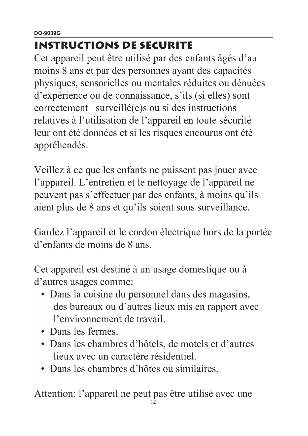 Retrouvez gratuitement la notice de l'appareil DO9039G DOMO au format PDF.