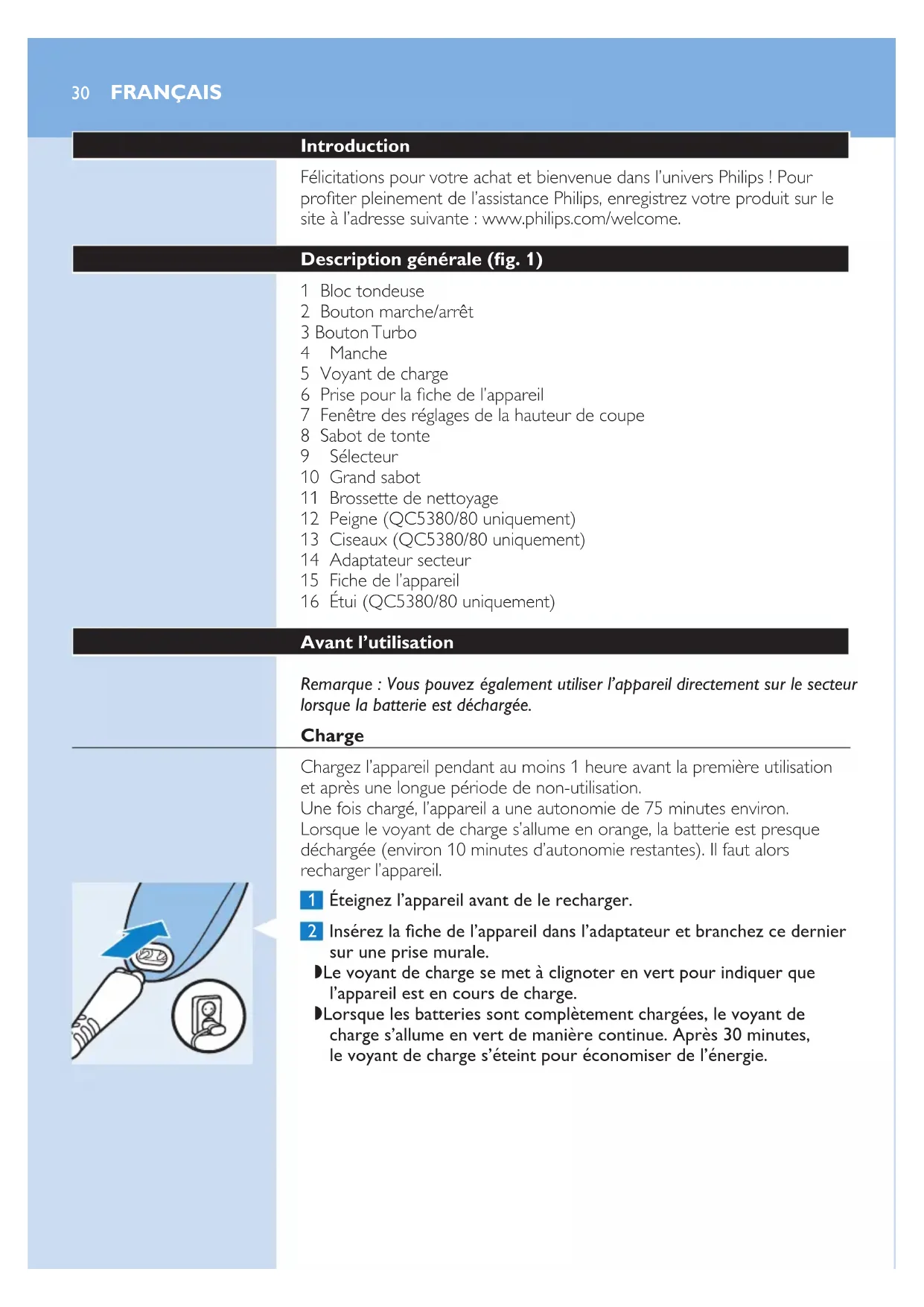 MODE D'EMPLOI Series 7000 QC5380 PHILIPS