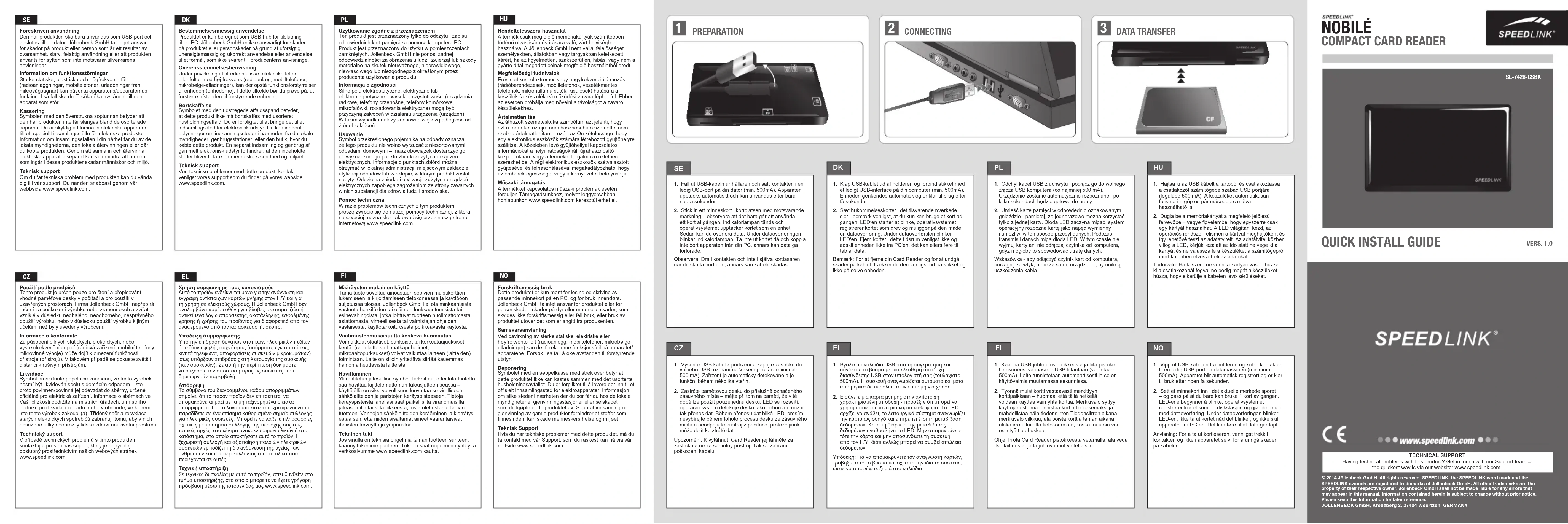 NOBILÉ - Lecteur de mémoire Speedlink - Notice d'utilisation et mode d'emploi gratuit