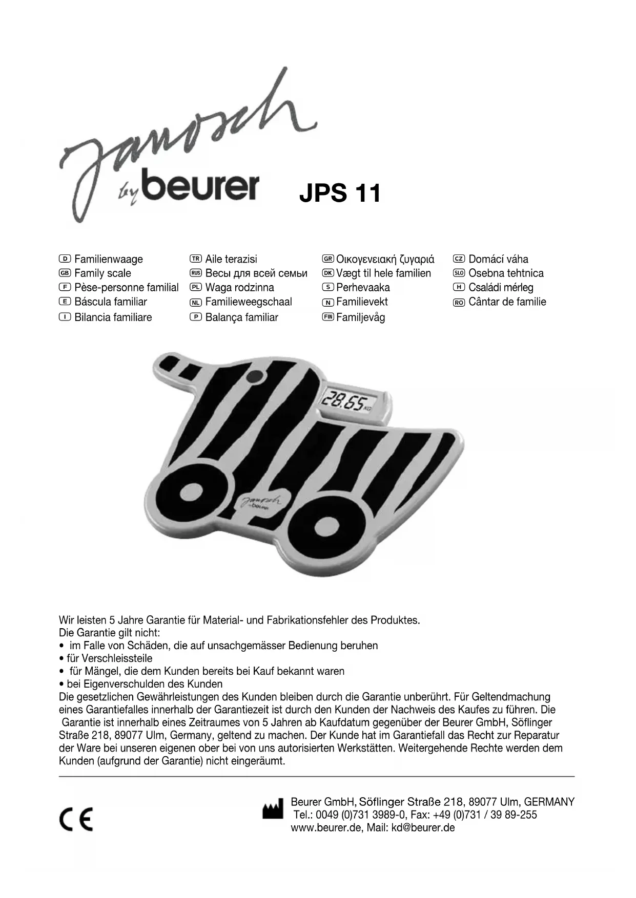 JPS11 - Balance BEURER - Notice d'utilisation et mode d'emploi gratuit