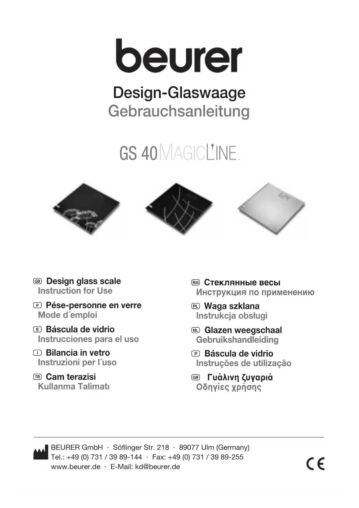 GS 40 - Balance BEURER - Notice d'utilisation et mode d'emploi gratuit