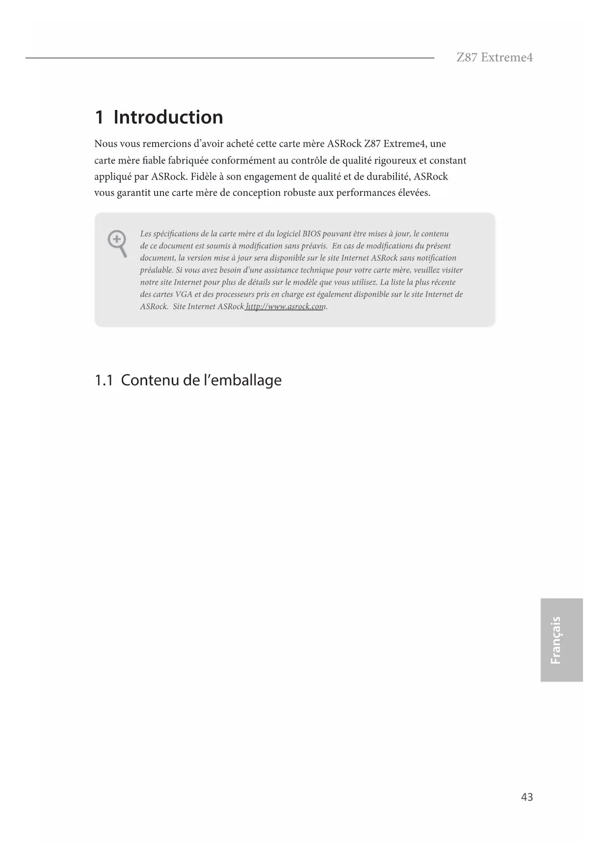 Z87 Extreme4 - Carte mère ASROCK - Notice d'utilisation et mode d'emploi gratuit