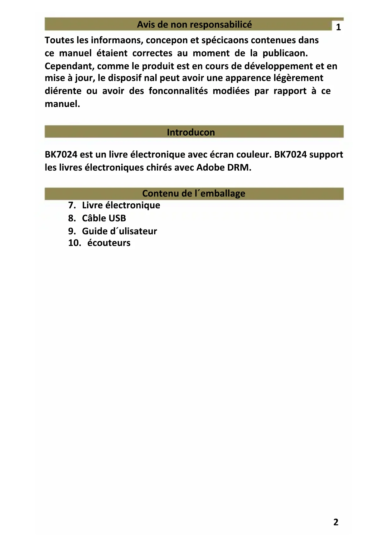 - La batterie n'est pas utilisé pendant une période prolongée. S'il vous plaît recharger la batterie du lecteur à nouveau