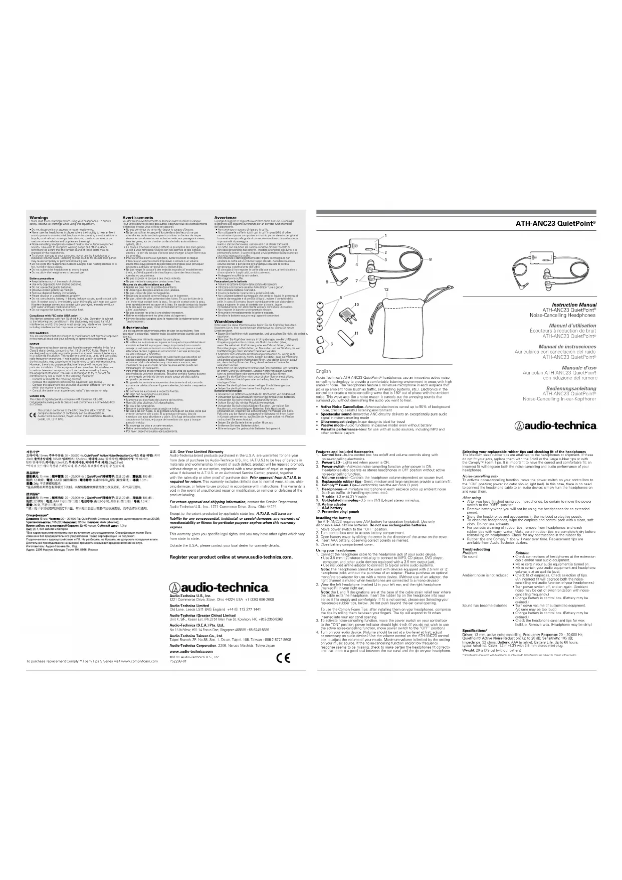 Noise-Cancelling Headphones Manuel d’utilisation Écouteurs à reduction de bruit ATH-ANC23 QuietPoint