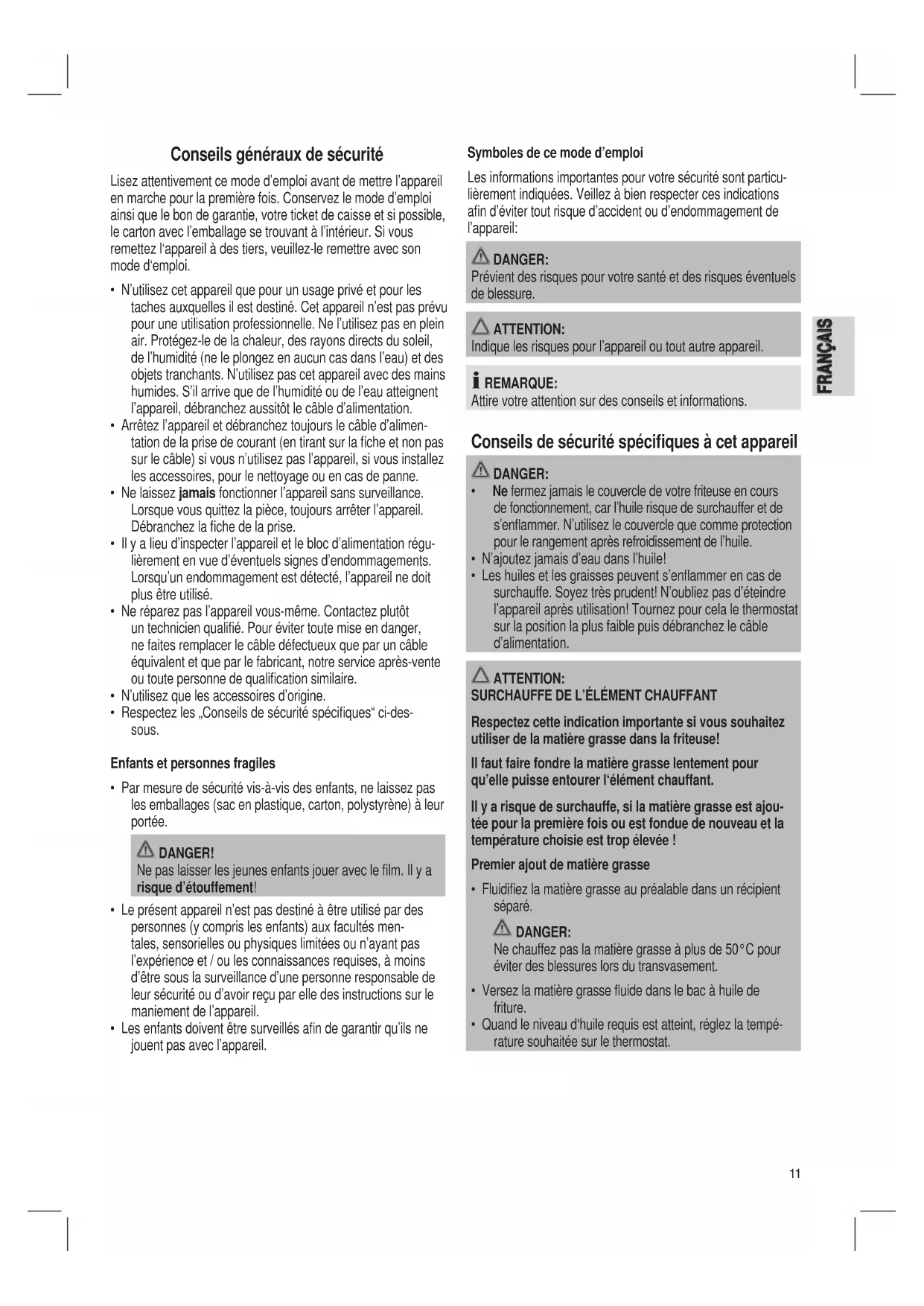 FRANÇAIS Conseils généraux de sécurité