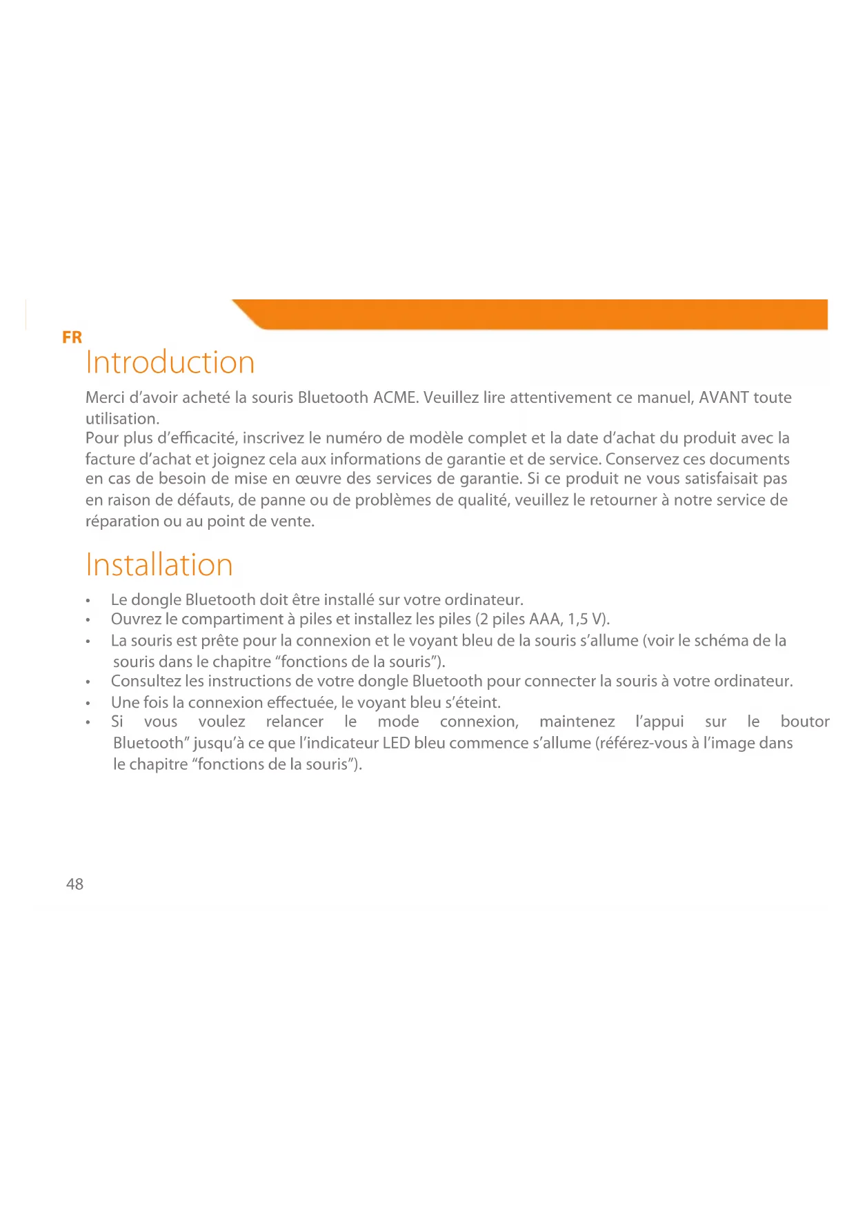 Merci d'avoir acheté la souris Bluetooth ACME. Veuillez lire attentivement ce manuel, AVANT toute utilise.