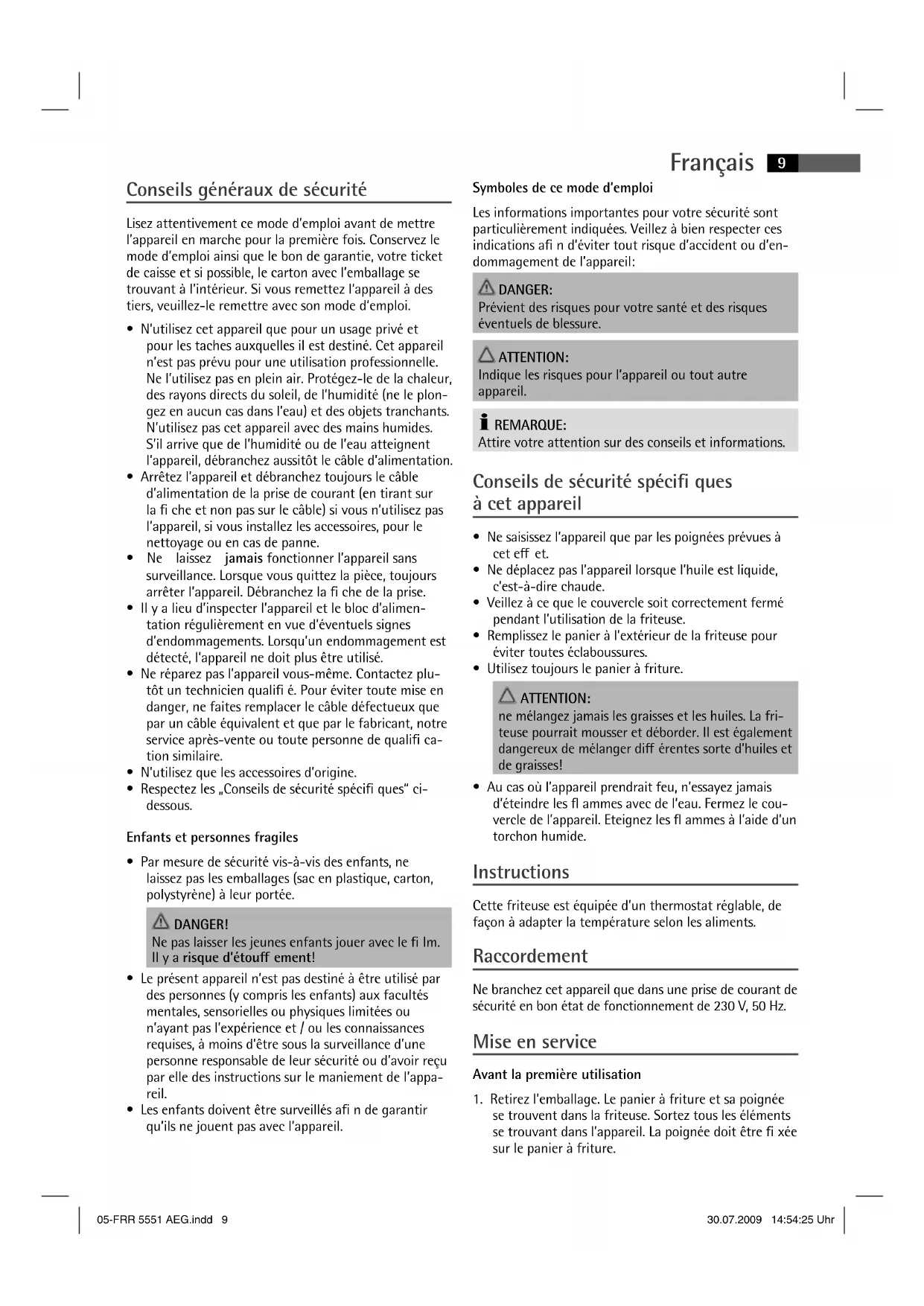 FFR 5551 - Friteuse AEG - Notice d'utilisation et mode d'emploi gratuit