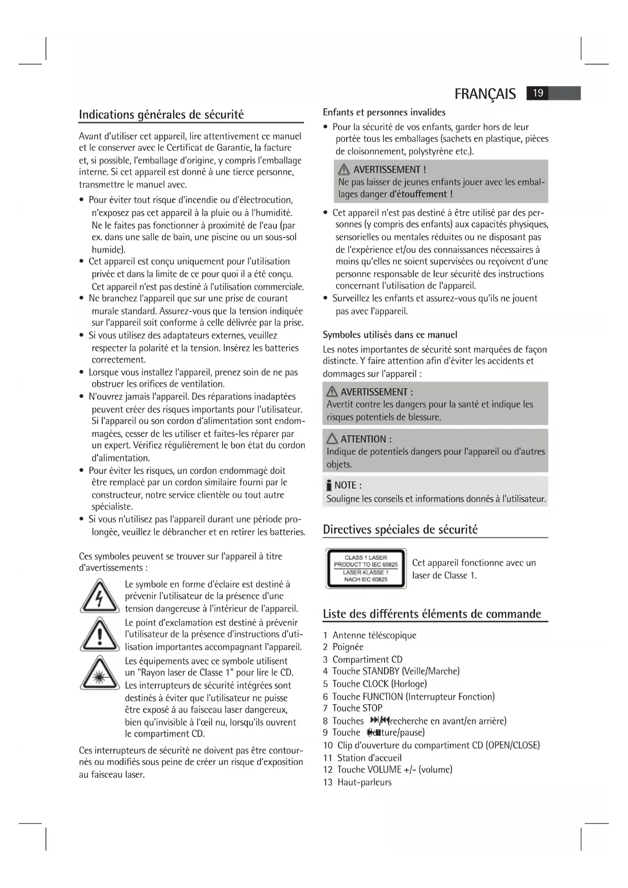FRANÇAIS Table des matières Situation des commandes page 3 Manuel page 19 Caractéristiques techniques page 25Elimination/Signication du symbole “Elimination”page 25