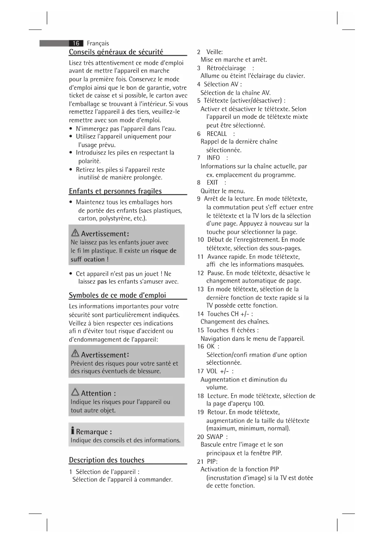 Retrouvez gratuitement la notice de l'appareil RC 4000 AEG au format PDF.