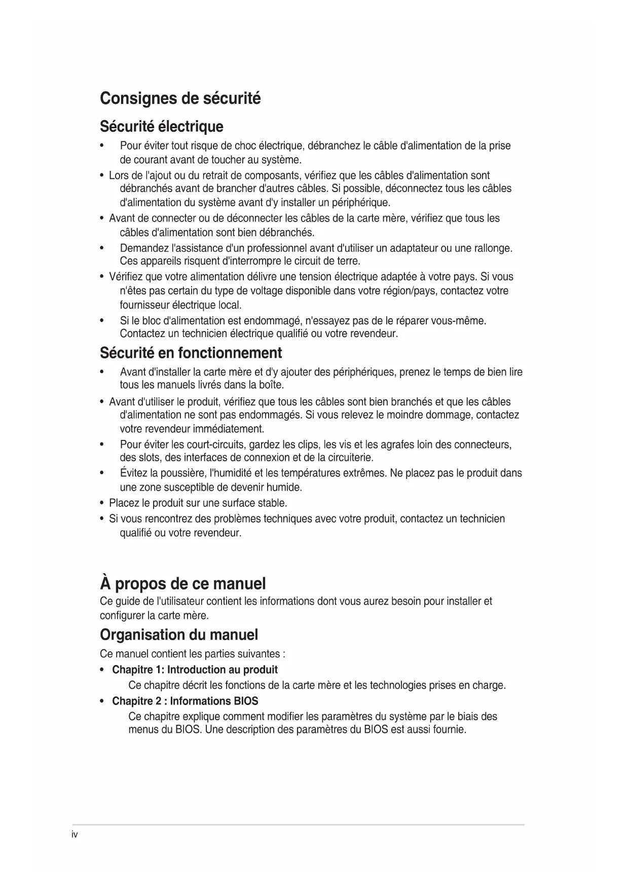 À propos de ce manuel iv