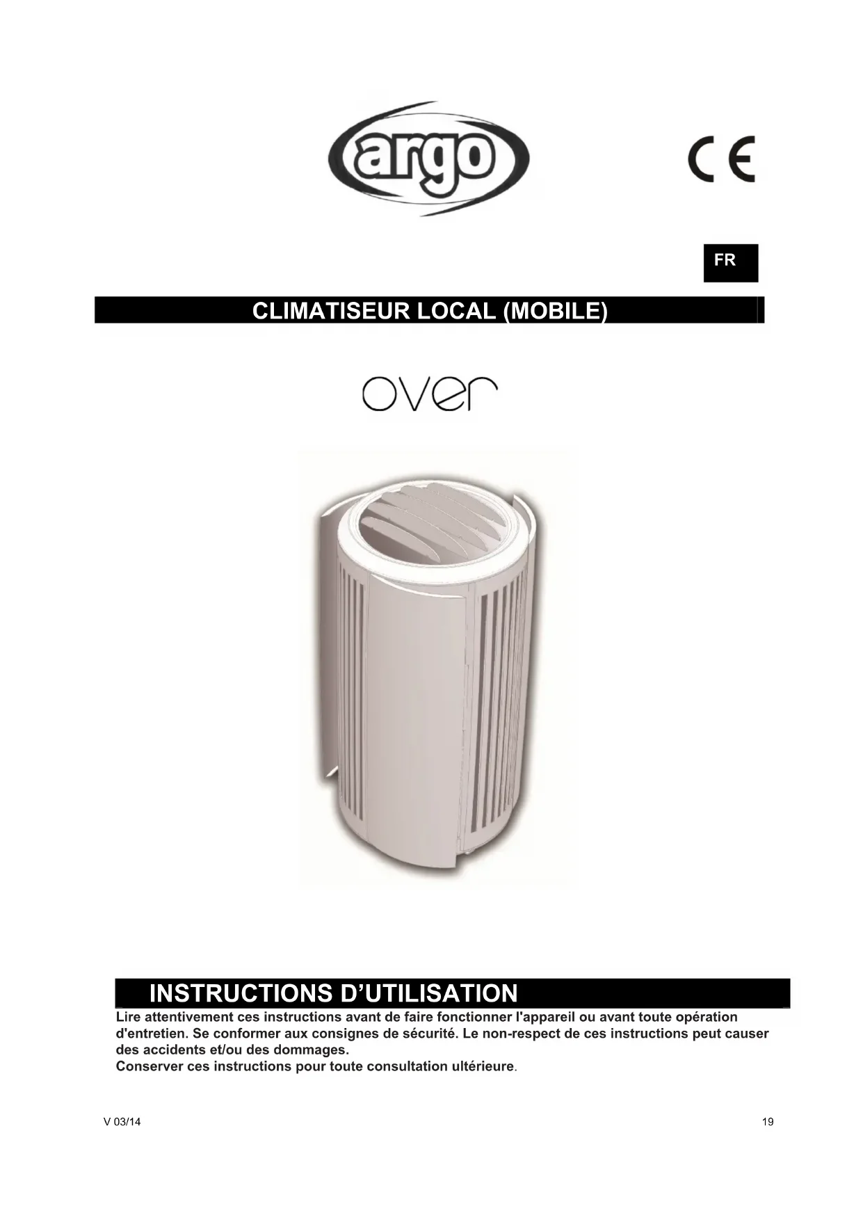 Over - Climatisation ARGO - Notice d'utilisation et mode d'emploi gratuit
