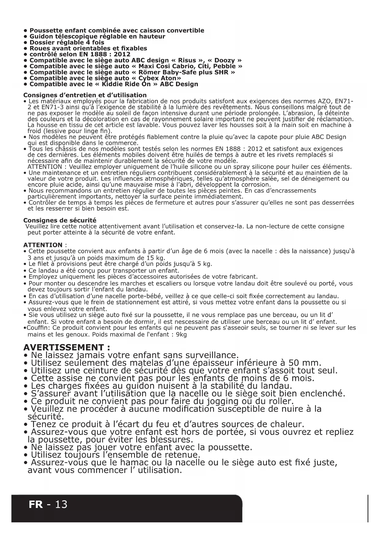 - Compatible avec le « Kiddie Ride On » ABC Design Consignes d’entretien et d’utilisation