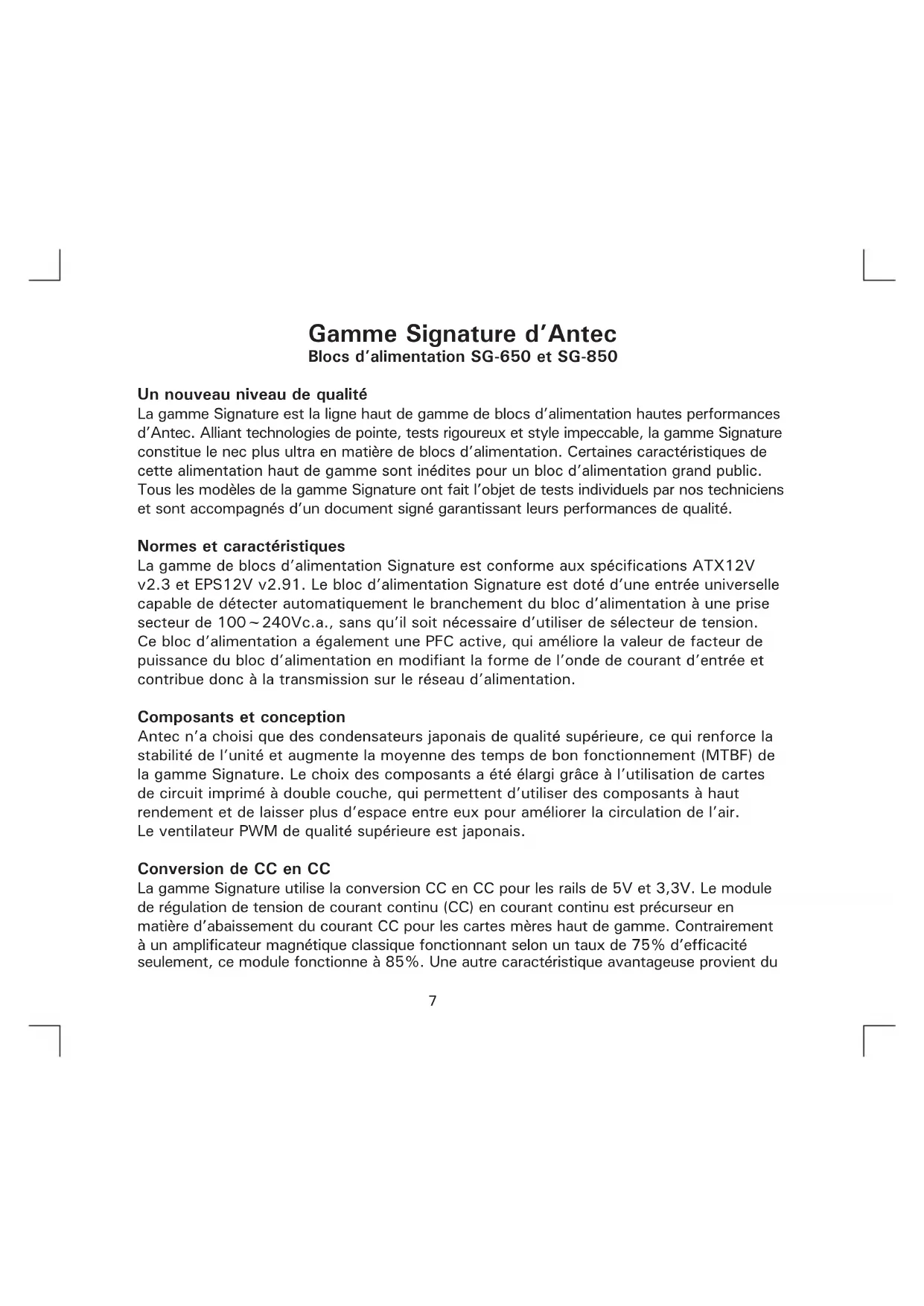 Signature 850 - Alimentation PC ANTEC - Notice d'utilisation et mode d'emploi gratuit