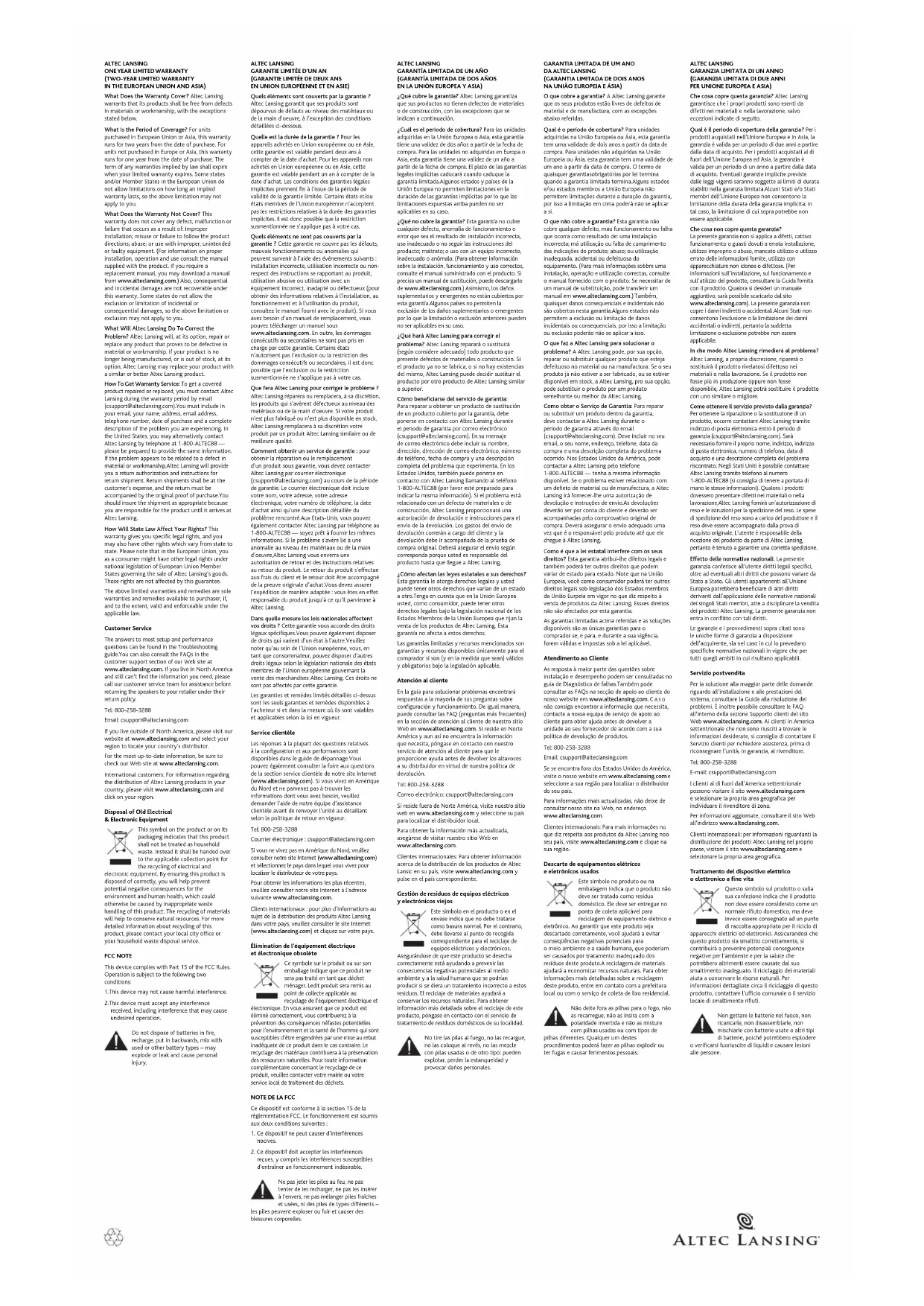 Altec Lansing réparera ou remplacera, à sa discrétion,