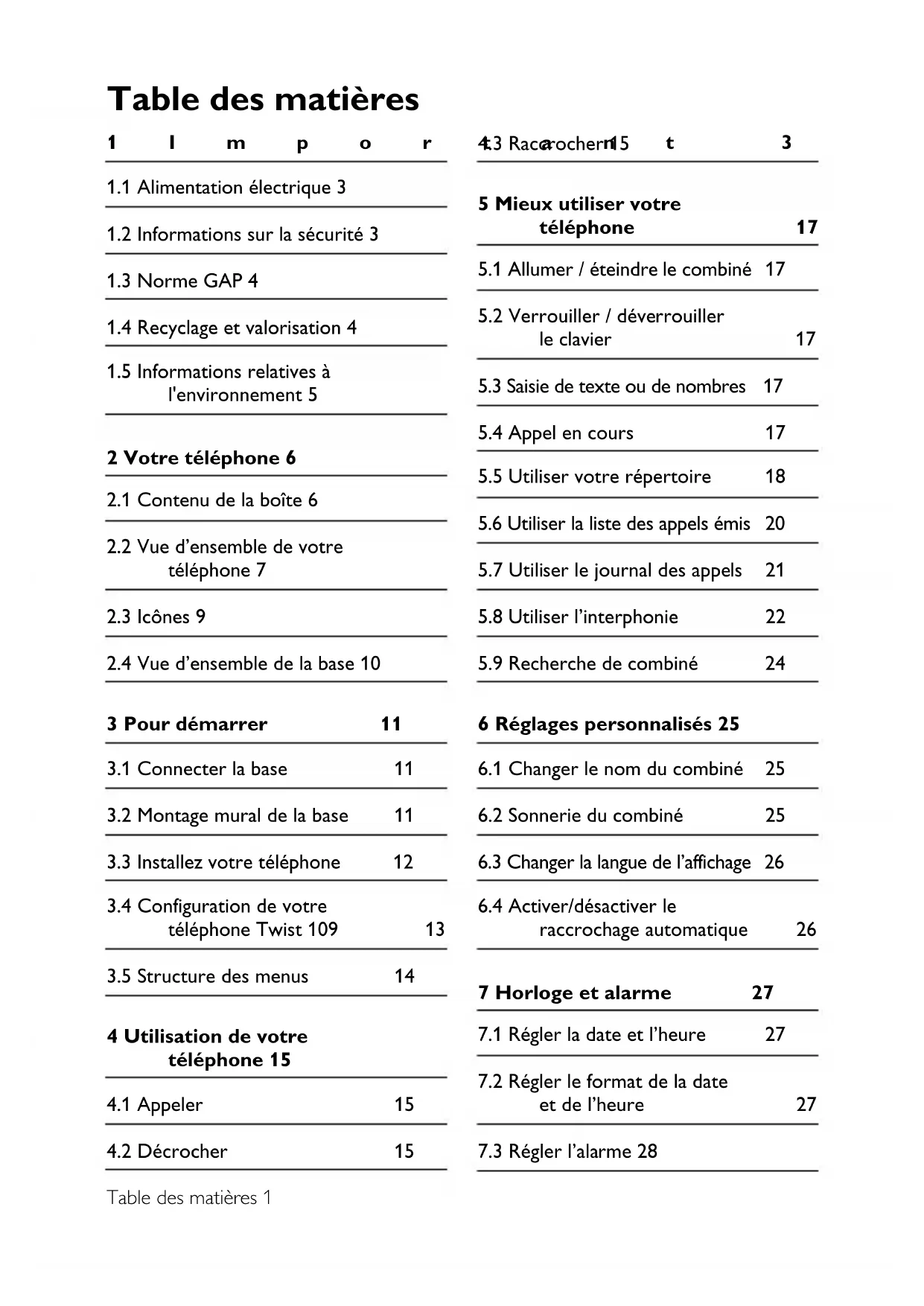 6.1 Changer le nom du combiné 25
