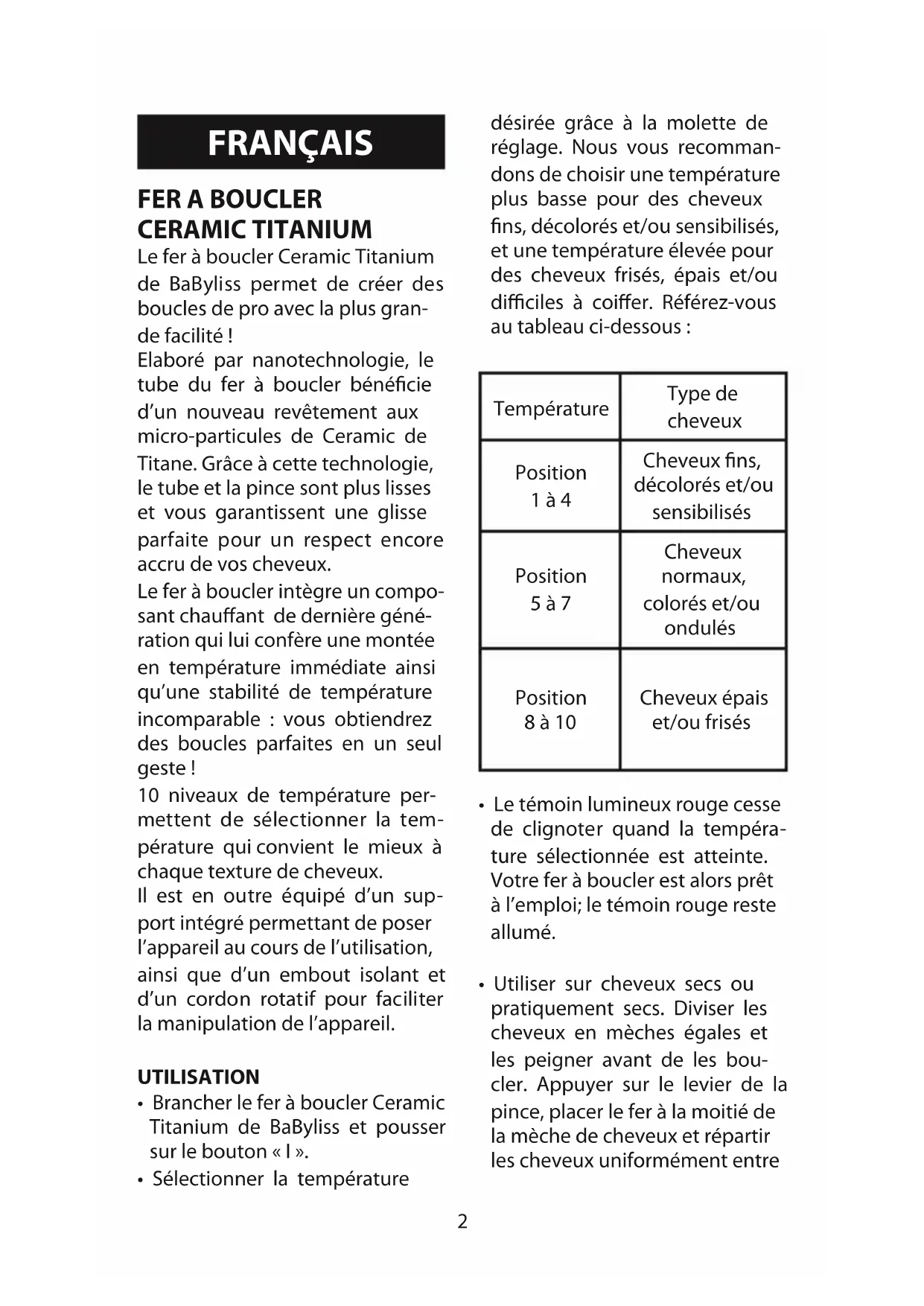 FER A BOUCLER CERAMIC TITANIUM Le fer à boucler Ceramic Titanium
