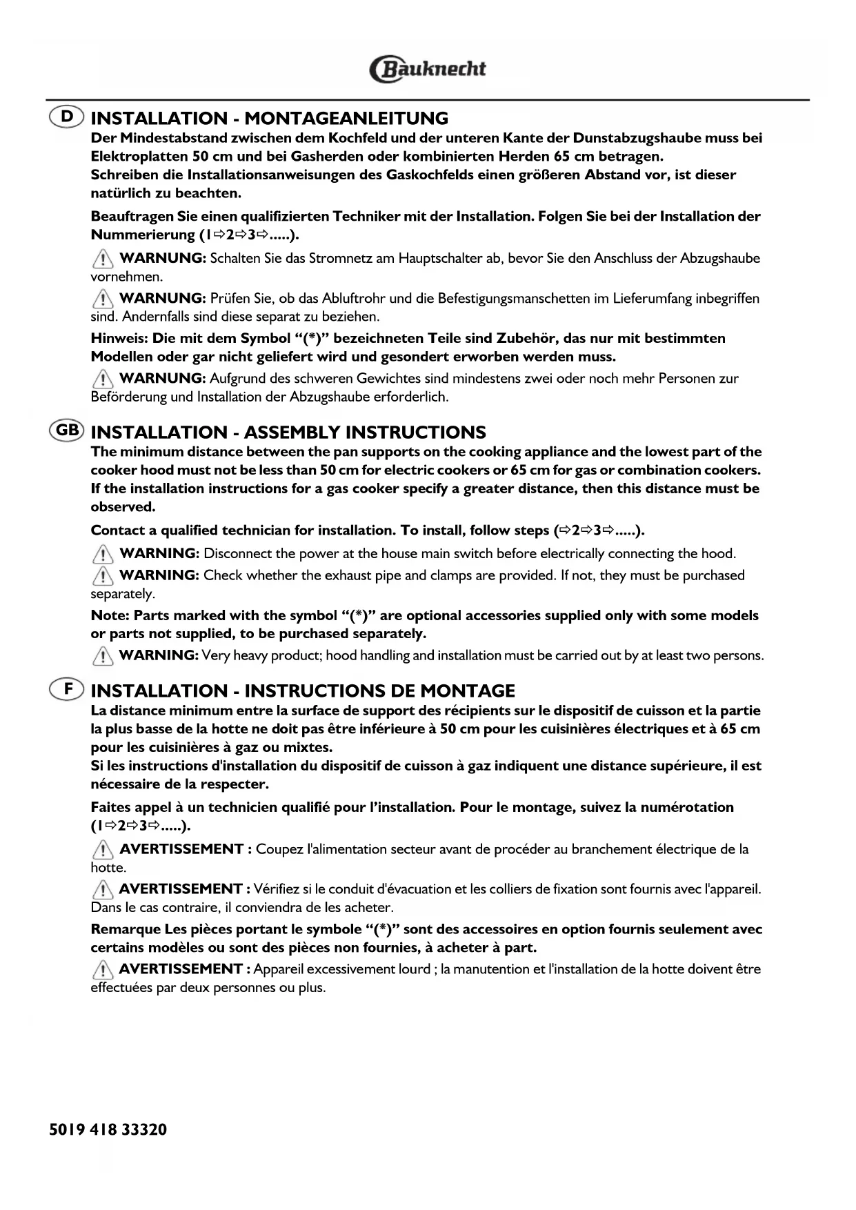 DDB 3690 IN - Hotte BAUKNECHT - Notice d'utilisation et mode d'emploi gratuit