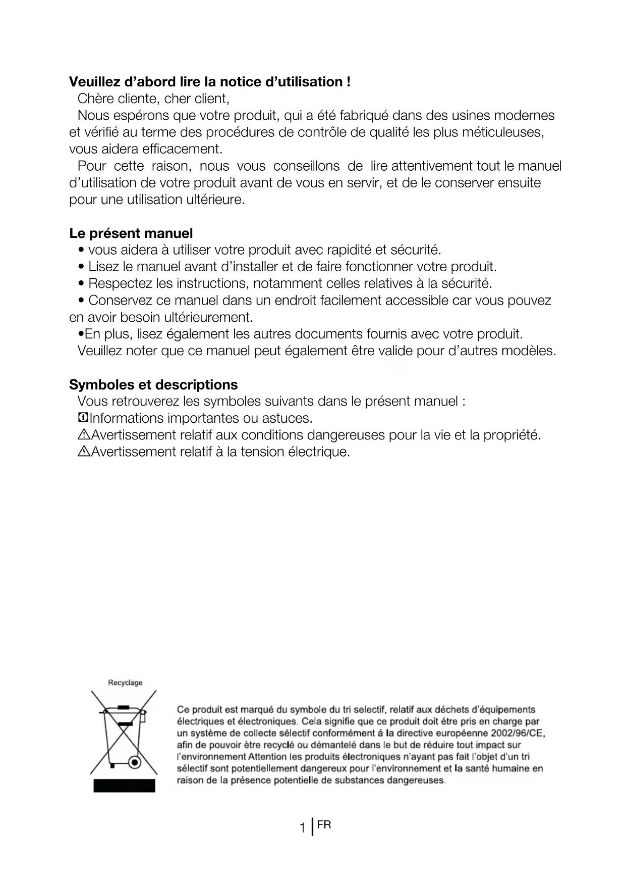 Pour cette raison, nous vous conseillons de lire attentivement tout le manuel