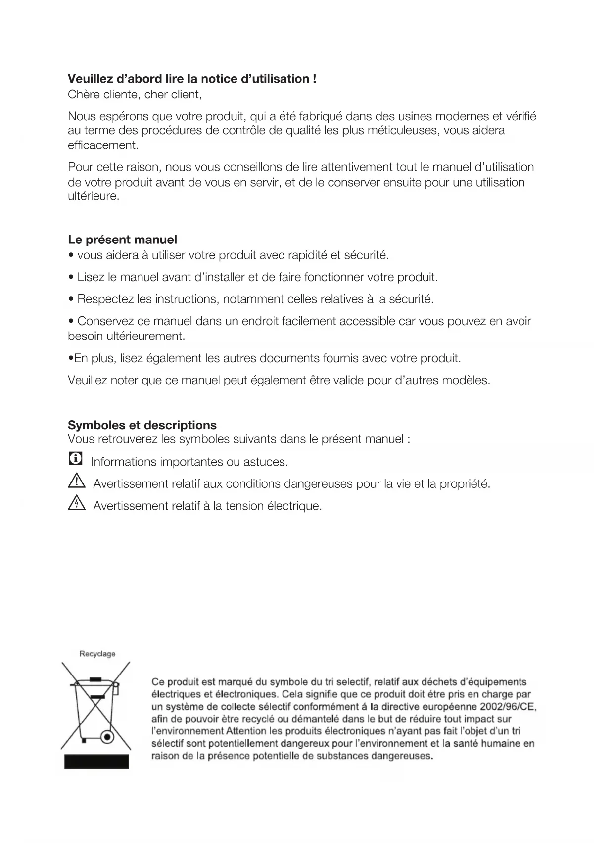 Pour cette raison, nous vous conseillons de lire attentivement tout le manuel d’utilisation