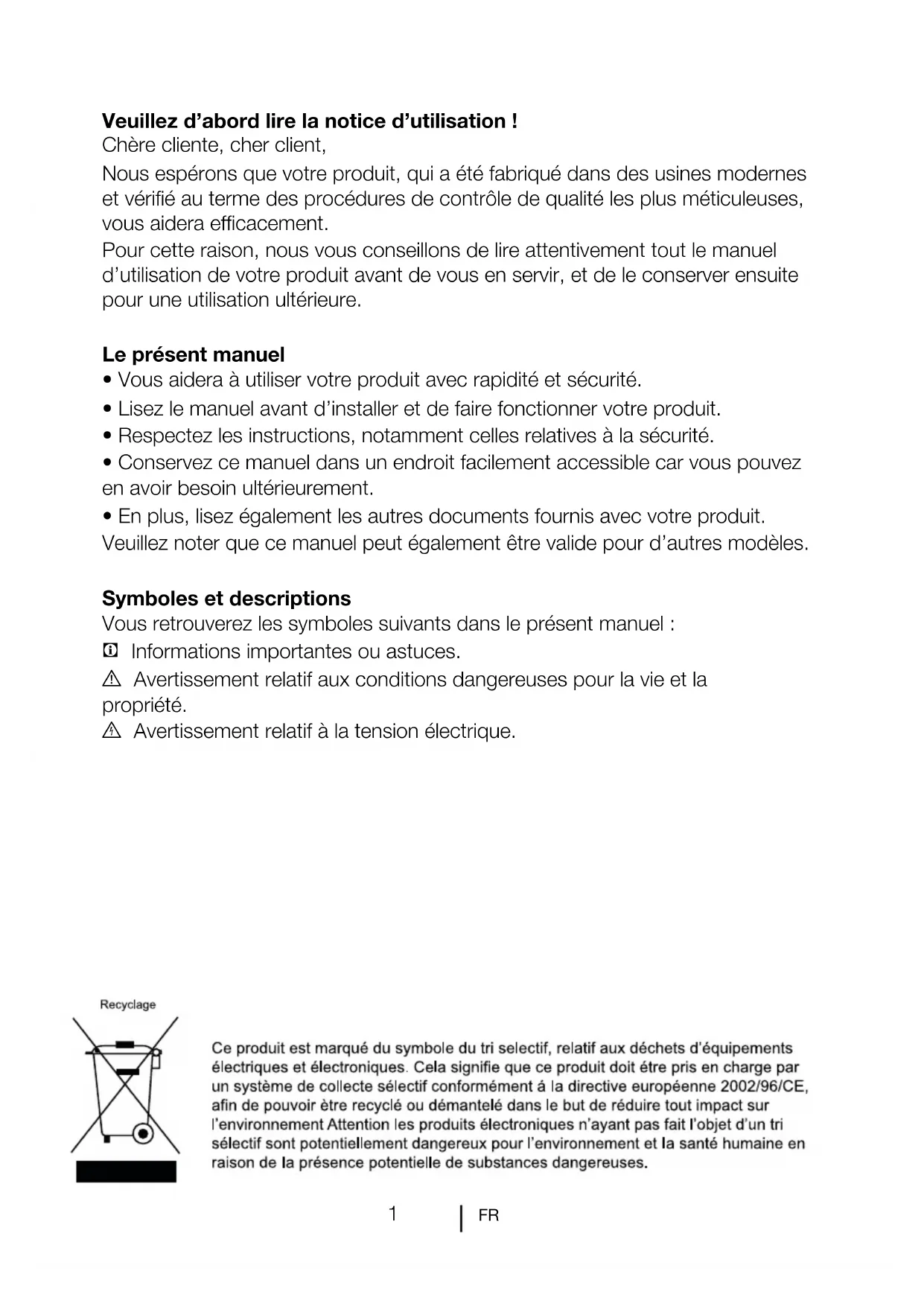 Pour cette raison, nous vous conseillons de lire attentivement tout le manuel