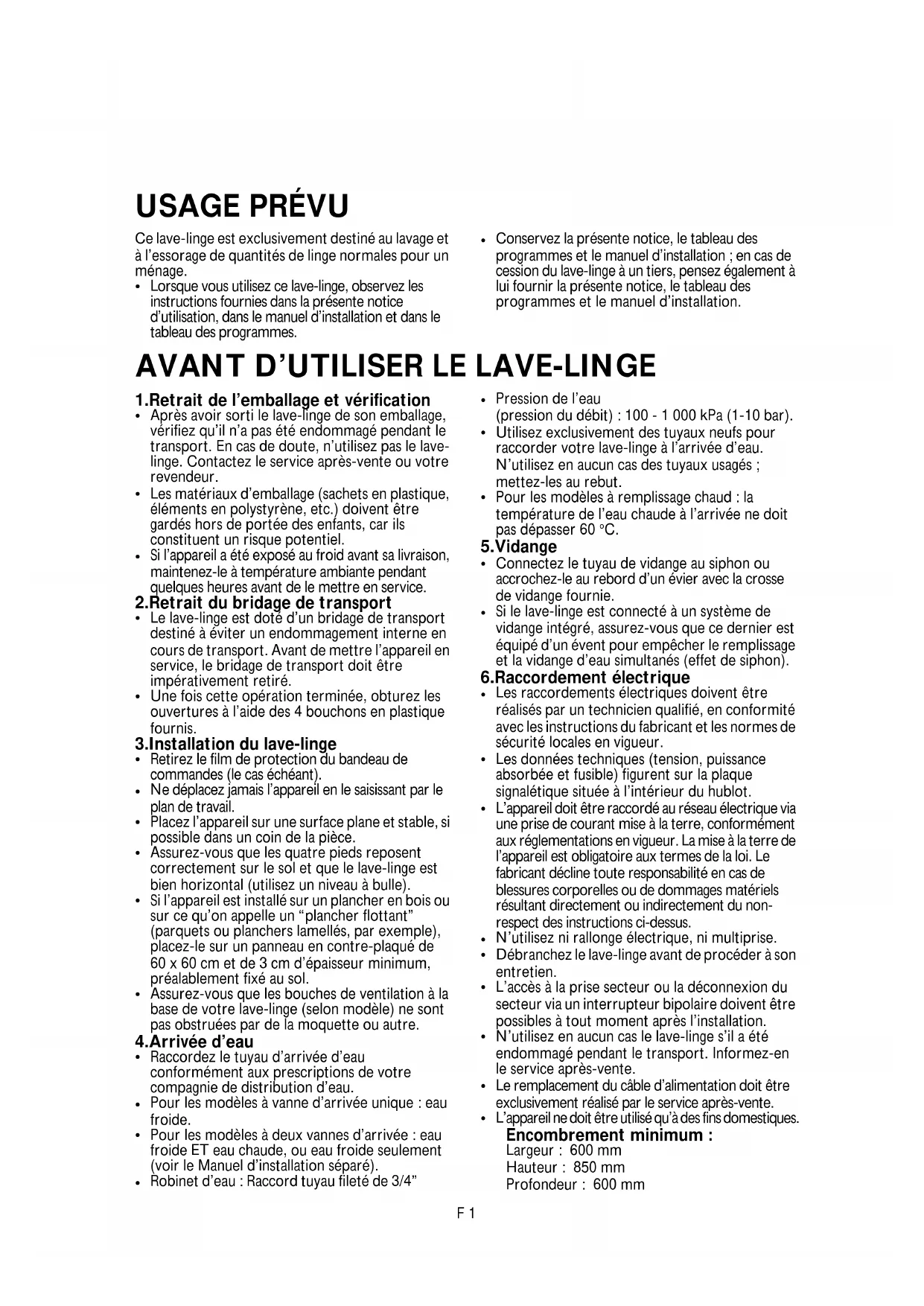 AVANT D’UTILISER LE LAVE-LINGE