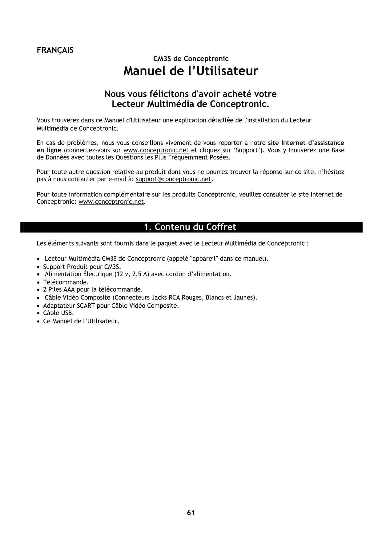 Nous vous félicitons d'avoir acheté votre Lecteur Multimédia de Conceptronic.