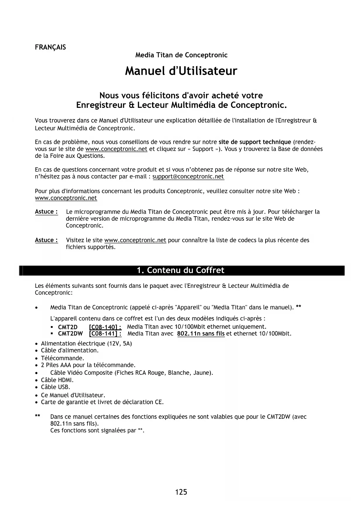 • Media Titan de Conceptronic (appelé ci-après "Appareil" ou "Media Titan" dans le manuel). **