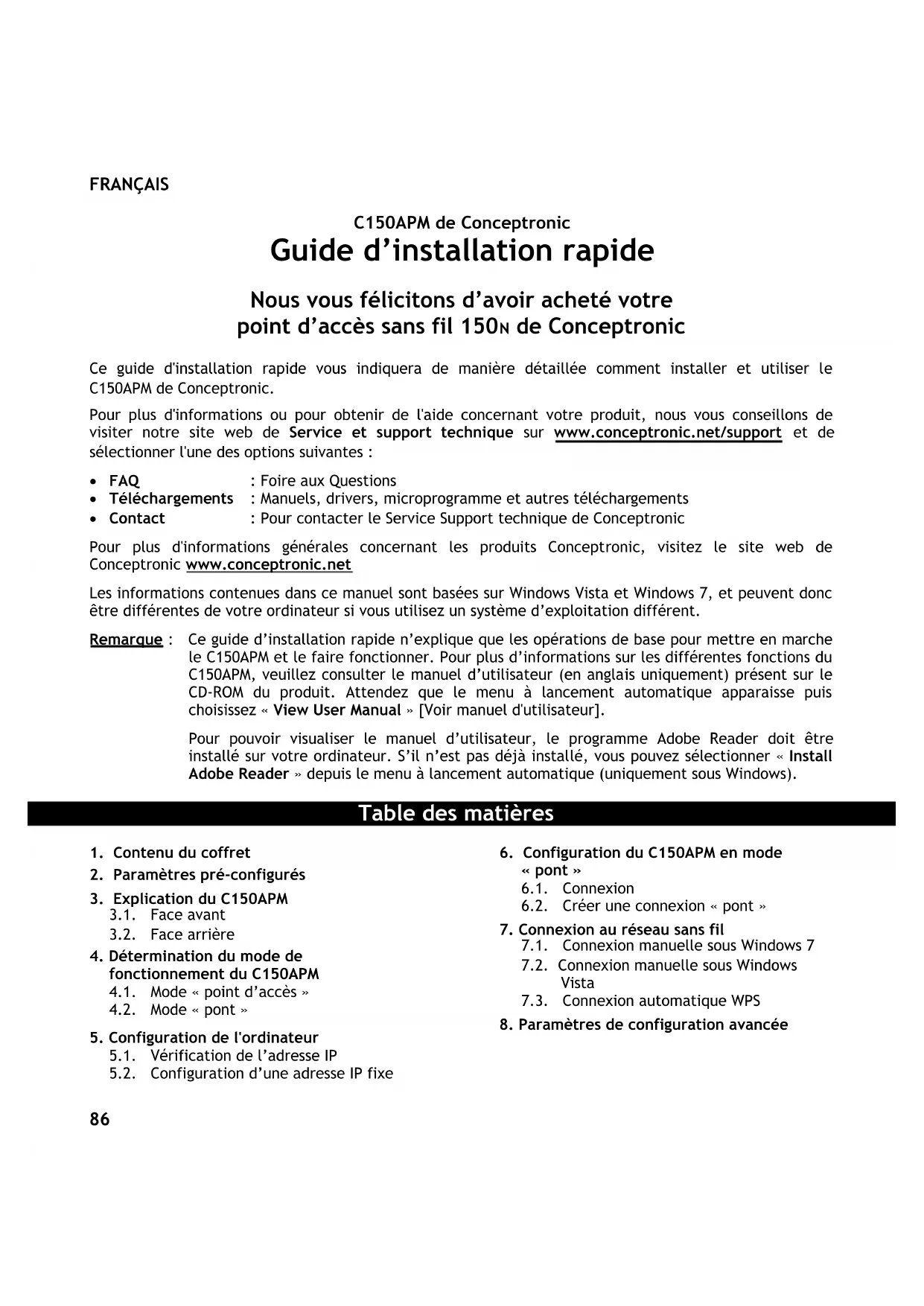C150APM - Point d'accès CONCEPTRONIC - Notice d'utilisation et mode d'emploi gratuit