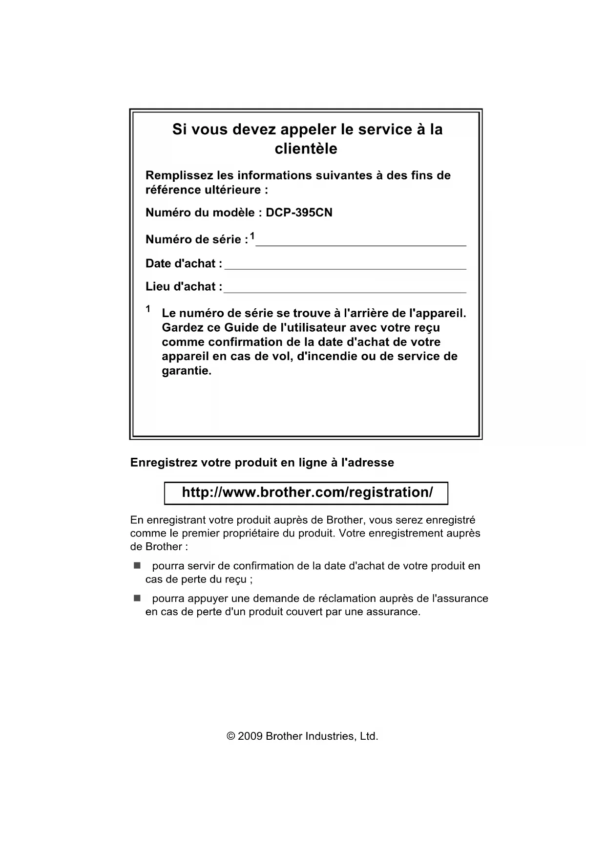 Numéro du modèle : DCP-395CN Numéro de série :